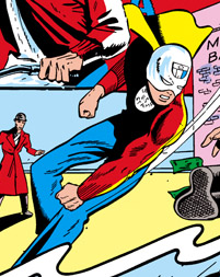 Enemies: "Three-Man Blitzkreig", Grandmaw, Titus Locke, Charles Chwatt, the Hermit, All-Out Americans Club, Mike Schultz, Smith the Missing Link, Stumpy Logan, Weasel Waxton, Spud Sickles (rival newspaperboy, rather than outright enemy)