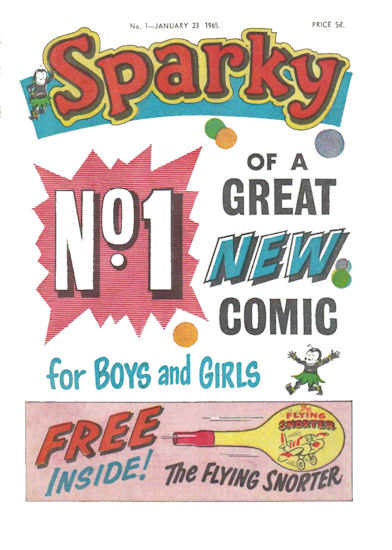 Strips: Sparky, Joe Bann and his big Banjo, Keyhole Kate (a revival of The Dandy character), The Young Castaways, Jeff ye Jolly Jester, Hockey Hannah, Wee Tusky (Dandy revival), Hungry Horace (Dandy revival), Dreamy Dave and Dozy Dorah, Minnie Ha-Ha (translated French reprint), The Kidnapped Kidds, The Palace of Secrets (text story), Nosey Parker, Flubberface, Freddy the Fearless Fly (Dandy revival), Dick Turpentine (reprint from Magic), Stone-Age Steve (Magic reprint), Hairy Dan (Beano reprint), The Moonsters, Cuckoo in the Clock, Winnie the Witch, Peter Piper (Beano revival), Pansy Potter (Beano revival), Big Klanky, L.Cars, Slowdown Express, Fireman Fred, Invisible Dick (Dandy revival), The Horse With Wings, Barney Bulldog (initially John Bulldog), Puss and Boots; I, Spy; Some Mummies Do 'Ave 'Em!, Thingummy Blob, Spoofer McGraw, Wyatt Twerp, Helpful Henry, Esky Mo, Willy the Woeful Wizard, Frosty McNab (Beano revival), Dick Turpentine (Beano revival), Ma Jolly and her Brolly (Dandy revival), Riddle of the Roughlands, Kipper Feet, McGinty the Goat, Raiders from the Red Planet, The Year of the Vanaks; Gilpin the Lost, Lost Boy; The Flood That Mother Remembers, Ali and his Baba, Bushboy, Super Witch