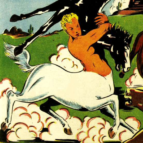 History: Speed Centaur is a genuine, mythological centaur. When he was very young an earthquake devastated his Arctic homeland, leaving him the sole survivor of his people. He relocates to America with the aid of Daily Views reporter "Reel" McCoy, and once grown up decides to become a superhero.