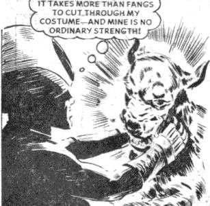 Powers/Abilities: Jackson's costume allows him to leap great distances, and claw-like gloves. It's also very durable, allowing him to take blows (or bites from gigantic dogs) without injury. It's also bulletproof and can turn aside knife blows.