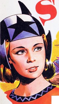 History: Diana Starr was the only daughter of Sir Arnold Starr, a millionaire who owns a vast estate in the south of England, where he built an amusement park, referred to as Wonderland, a place full of historical interest, excitement and surprises built especially for children, where employees re-enact scenes from history and from fairy tales. Diana wearing a "fantastic" flying suit (built by her father?) would zoom from place to place in Wonderland to sort out any trouble that arises, in a type of security person/manager role.