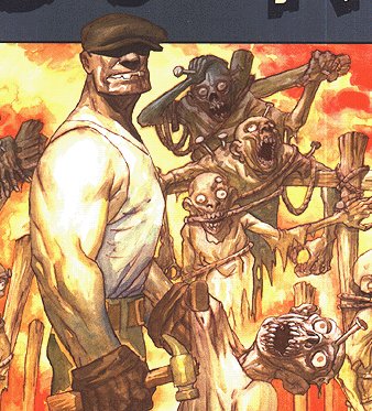 History: After his father went missing and his mother ran off with another man, the child who would become known as the Goon was raised by his Aunt Kizzie, a circus strongwoman. Raised in the circus, the Goon worked as muscle, toting around equipment, until the fateful night that Labrazio, "the most feared crook in the burg" decided to hide out from the cops among the carnies. When the police turned up, Labrazio used the teenage boy as a shield, and Kizzie was shot dead trying to save her nephew. The Goon escaped Labrazio's grasp after the shoot out, and after his aunt died in his arms, he beat the crook to death with a rock. With everyone else dead, the Goon took Labrazio's book of people who owed him, burned all the bodies, and left the circus.