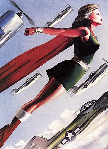 History: In 1940 on Earth B, pretty little Molly Wilson was a 14 year old orphan, working as a librarian. Because of her innate goodness, she was chosen by Mother Nature herself to become a powerful hero. Given an emerald necklace and ring, whenever Molly touched one to the other and spoke aloud the word "Alakazam!" she was transformed by a bolt of magic lightning into the green costumed Thunder Girl. In this identity (she looks the same, but no one recognises her) she had the powers of nature: The flight of the eagle, the eyes of the hawk, the wisdom of the owl, the strength of the elephant, the hardness of diamond, etc.