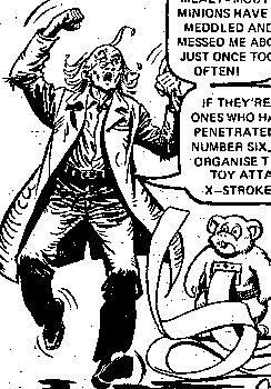 Powers/Abilities: None. However he had an army of deadly toys each with its own unique abilities, such as the evil robot Big Teddy. Unlike other killer toy operators (such as General Jumbo, Nick Jardine or Dr Droll), the Toymaker doesn't used modified soldier toys (war toys) and the like, preferring to modify more innocuous things like teddy bears and clockwork mice.