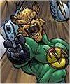 Powers/Abilities: He is equipped with a large number of cybernetic implants, including lasers, flame throwers, rocket launchers, and turbines installed in his legs which allow him to fly.