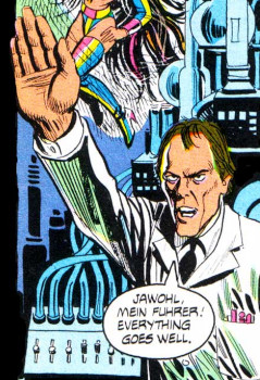History: Klaus Venerisch was a scientist working for Hitler's Forschung Division, experimenting on Jews and captured P.O.W.s to find ways to control victim's minds and bodies, and ultimately to be able to create life itself. When it became clear to Venerisch that the Nazis' defeat was imminent, he realised he would have to flee Germany before the Russians arrived. Aware that he could be identified by dental records from when he had worked in Switzerland prior to the war, Venerisch convinced a fellow scientist to transplant the teeth of a dead man into his own head, though the rushed experimental surgery left him with an unnatural overbite and rictus grin. With his original teeth now left with the corpse whose dentures he had stolen, Venerisch and his compatriot then prepared to torch the scientist's laboratory, only for the Nazi to deliberately trap his erstwhile ally in the fire, ensuring no one alive knew of his deception. Now calling himself Venimus, Venerisch escaped just ahead of the Russians reaching Berlin. As he had hoped, the Soviets hunting for him found the burned corpses in the remains of his lab and thanks to the teeth mistakenly declared him dead. However a Jewish youth, Zev Shomer, who had devoted himself to tracking down Nazi war criminals was unconvinced, and so continued to hunt for the Nazi.