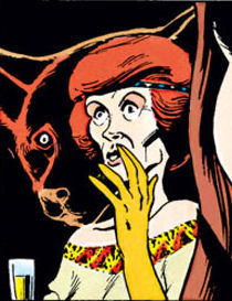 (Mighty World of Marvel II#8/2) - Jasper's influence saw the passage of time distorting around the British Isles, with those trapped within the increasingly dystopian U.K. feeling like months had passed when only a few weeks had. Vixen began feeling Jaspers had gone too far, worried that the U.S.A. and Russia would not stand by as things worsened, or that his increasing excesses would draw S.H.I.E.L.D. or the Avengers' attention. Feeling she had put too much work into eliminating the heroes and taking over S.T.R.I.K.E. for Jaspers to ruin things, she decided to personally assassinate "Mad Jimmy." Accompanied by two of her operatives, Jennifer and Angel, the latter of whom she seemed to be genuinely fond of, she broke into 10 Downing Street (home of the British Prime Minister), but was off-footed to find Jaspers waiting for her, aware of her plans, visibly even more insane than she had realized ... and able to warp the very fabric of reality at his whim. Vixen hastily ordered Jennifer to shoot Jaspers, but Jaspers slew both agents, then switched his attention to Vixen. Scared, she tried to make a deal, but Jaspers dismissed her entreaties and transformed her into an actual vixen. Terrified, she would have screamed...had she remembered how to do so.
