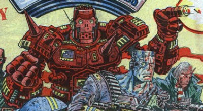 Powers/Abilities: Apart from a variety of built in sensors and weapons, Wallbanger's main ability was to be able synthesise food for the group out of anything (but usually mud).