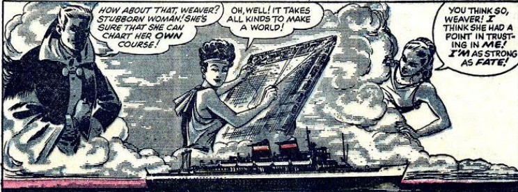 Comments: Unlike other horror hosts, the Weaver influences events in her stories, acting unnoticed to push events down her preordained path. The Man in Black, Venus and the Weaver, fellow storytellers / deciders of people's destinies, also interact with one another, colleagues in shaping people's lives with an occasional hint of rivalry between them.