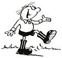 History: Willie's wellies were completely normal until the day Professor Krankpot got hold of them. Willie had been out for a walk that day that by chance took him past the Professor's laboratory, and Krankpot, who had run out of test tubes and other containers, asked to borrow them to use in one of his experiments. The Professor was attempting to turn apples into gold, and needed something to keep the various fluids he was using in. His planned experiment failed, but somehow the treatment brought Willie's boots to life. After that you couldn't get Willie to wear anything else on his feet, much to the disgust of his mother. He wasn't a crime fighter, just a kid with a wonderful and unique set of boots.