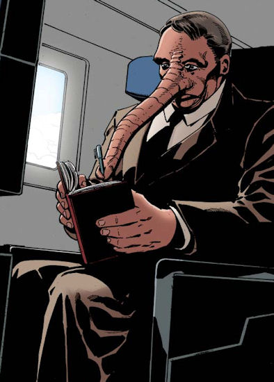 History: Born in 1917, Xavier Desmond led a normal life until a fateful day in 1946; like many others, on the day that Jetboy battled Dr.Tod over New York and the Wild Card virus was unleashed, Xavier's life was changed forever. Infected, Xavier was lucky to be one of the 105 who survived; he was less lucky to be one of the 9% who became a physically deformed Joker. Gaining a prehensile trunk, he soon faced the prejudice directed at victims of the virus; his wife left him, he lost his job, and then he lost his home. Like many in his position, he moved to the Bowery district of New York City, or Jokertown, as it soon became known. There he began to rebuild his life. He got a job working at the Funhouse nightclub, and eventually came to own the establishment. Tired of the hatred Joker's continually faced, he founded the Joker Anti-Defamation League, JADL for short, and worked tirelessly to promote equal rights for Jokers; his fellows soon dubbed him "the Mayor of Jokertown", and he gained national prominence. When an international tour was arranged in the mid-1980s, with Jokers, Aces and politicians travelling to various countries to see how nations other than the States dealt with their Wild Card populations, Xavier was an inevitable choice to be part of it. A year or so later, in 1987, he passed away.