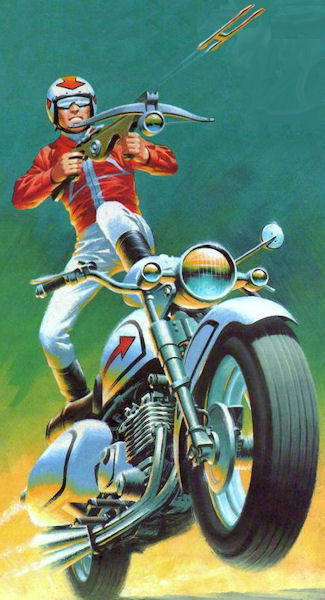 History: Crossbow is an ace crime fighter and gang buster, armed with a crossbow and a variety of special-purpose bolts. He's more than happy to steal crooks' money, though he tends to literally throw it away to the public afterwards.