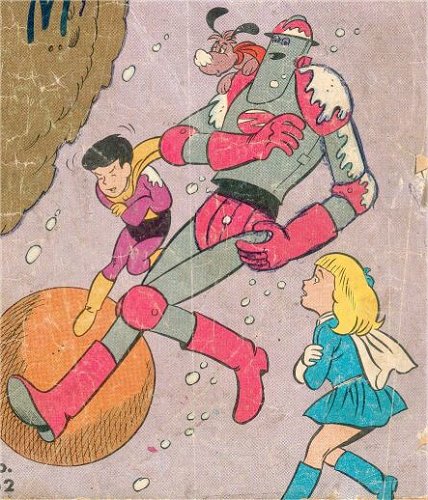 History: Created by a nutty inventor in a bright, peaceful city, somewhere in an unnamed country, Zor was a super android constructed to defend endangered citizens, always adventuring with the professor's two kids, who were able to transform themselves into a super boy and a super girl when danger was near.
